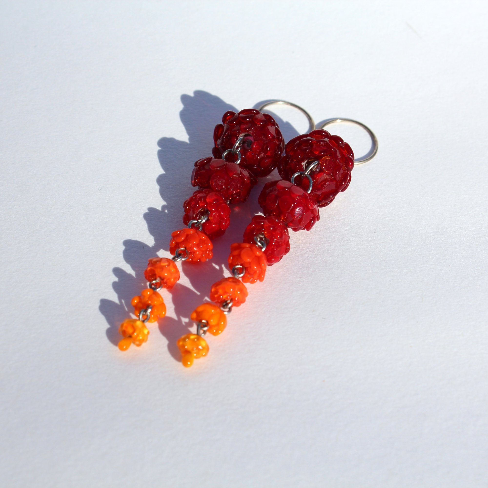 I hand sculpt glass with torches to make these beads, and I hand forge the sterling silver earwires.